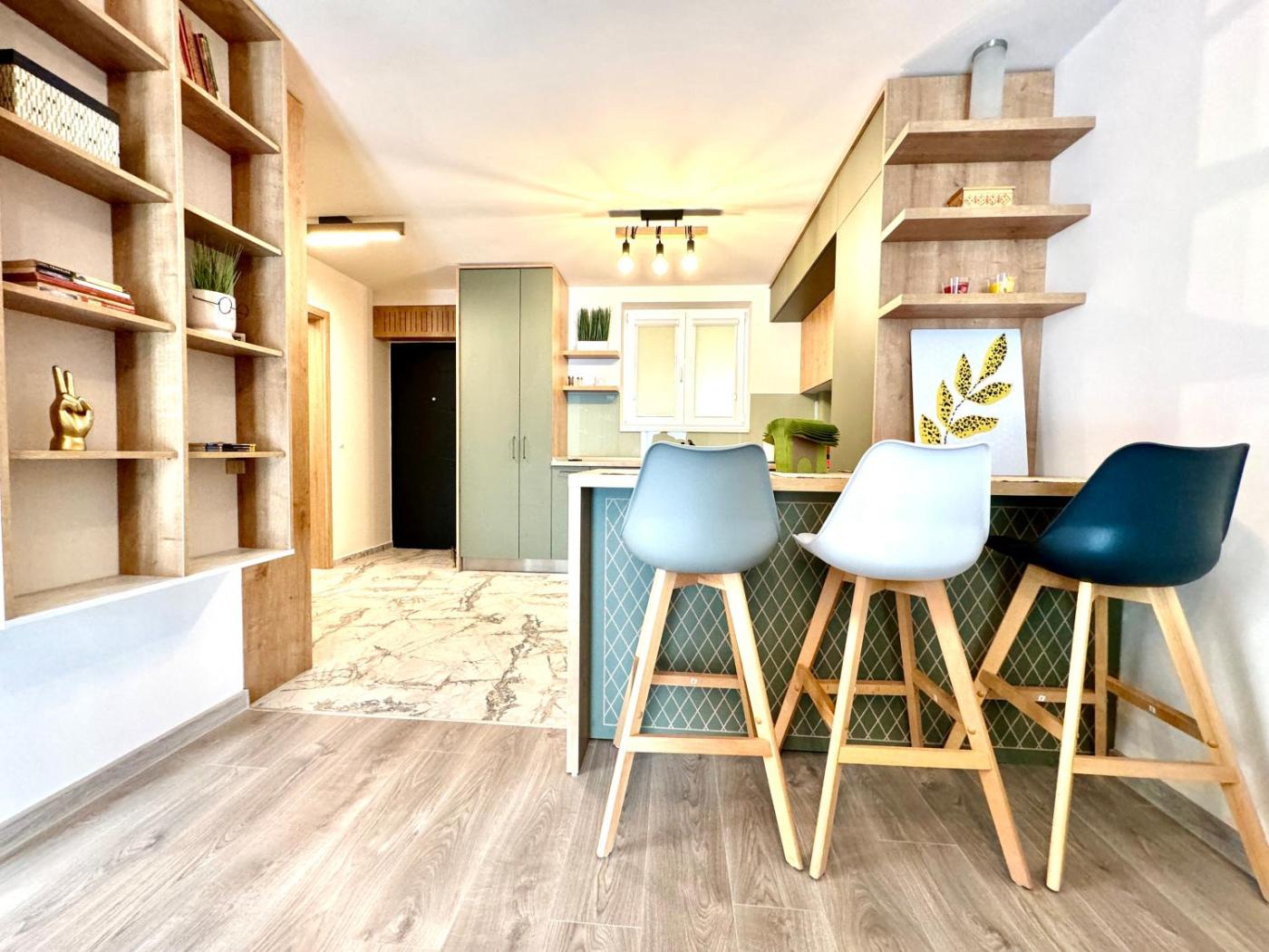One-Bedroom Apartment. The air-conditioned apartment has 1 bedroom and 1 bathroom with a shower and a hairdryer. Meals can be prepared in the kitchen, which features a stovetop, a refrigerator, a dishwasher and kitchenware. This apartment features a washing machine, flat-screen TV with cable channels, city views, as well as chocolate for guests. The unit has 1 bed.